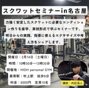 先日に名古屋で開催されたスクワットセミナーを受講しました。名古屋