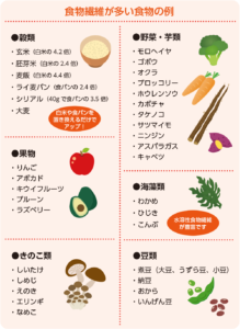 食物繊維は、水溶性が1に対して不溶性2を意識する。