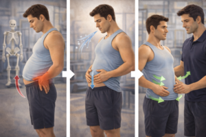 下腹を落とす前に、下腹が出にくい姿勢を作ることが最優先です。